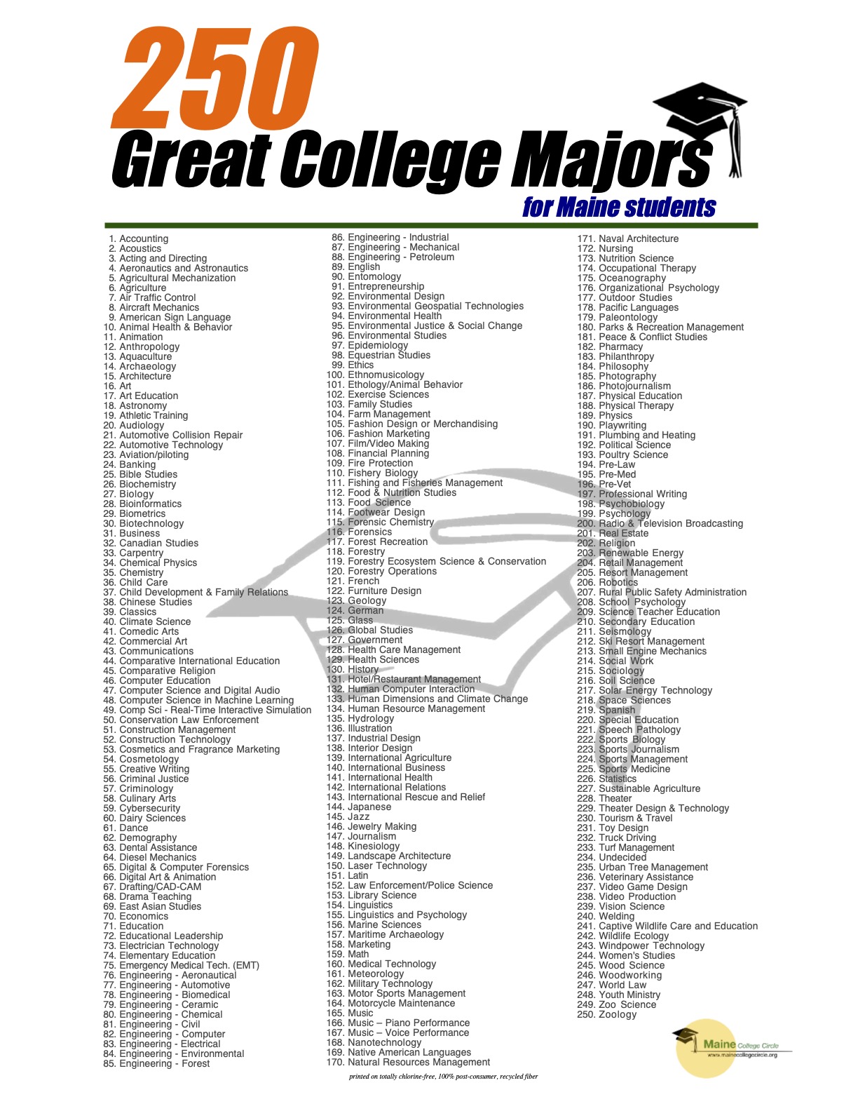 250 Great College Majors